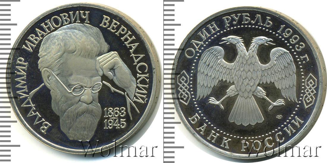 Портрет В.И. Вернадского. Владимир Иванович Вернадский (1863 - 1945) - академик, создатель учения о биосфере, основатель геохимии, биогеохимии, радиогеологии 1 рубль. 130-летие со дня рождения В.И.Вернадского ЛМД