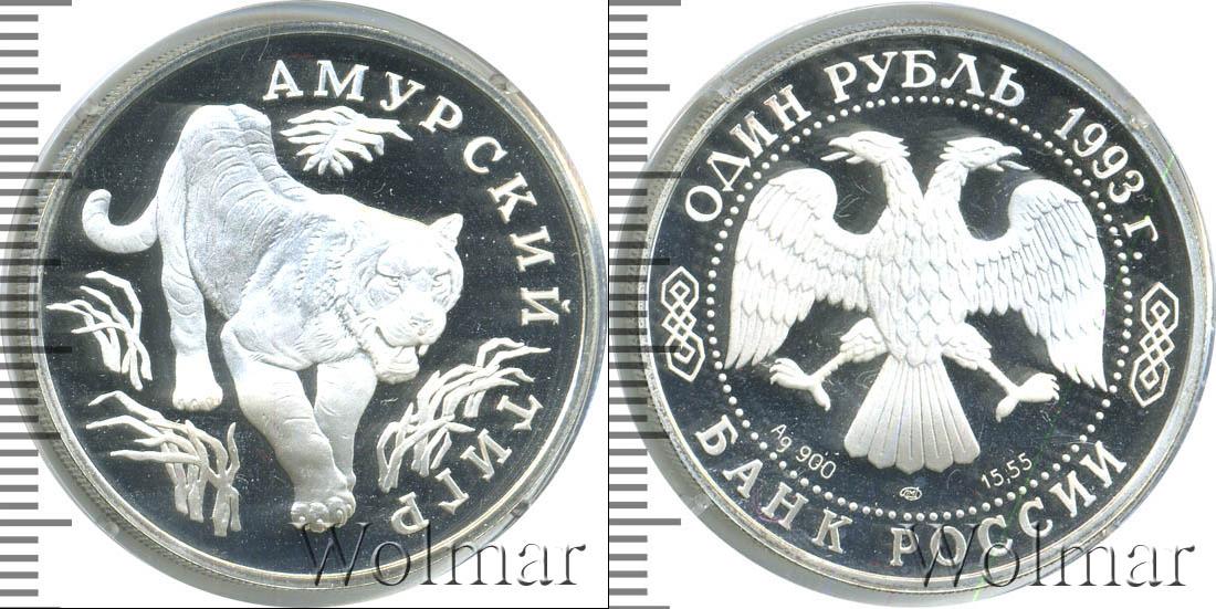 Микроцарапинки, патина, пятна 1 рубль ЛМД Красная книга. Амурский тигр