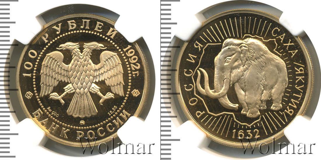 Монета абсолютно без дефектов. В капсуле.Изображение мамонта на фоне карты Республики Саха (Якутия) в сиянии лучей. Предки якутов заселили свой край в X-XYI вв. В 1632 г. был основан город Якутск. Тогда Якутия вошла в состав Российского государства.