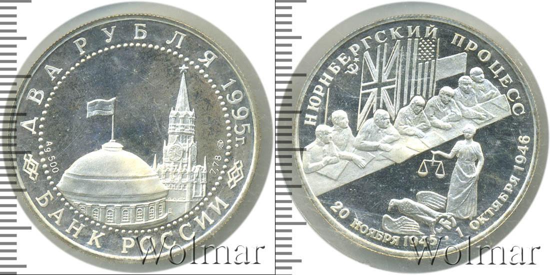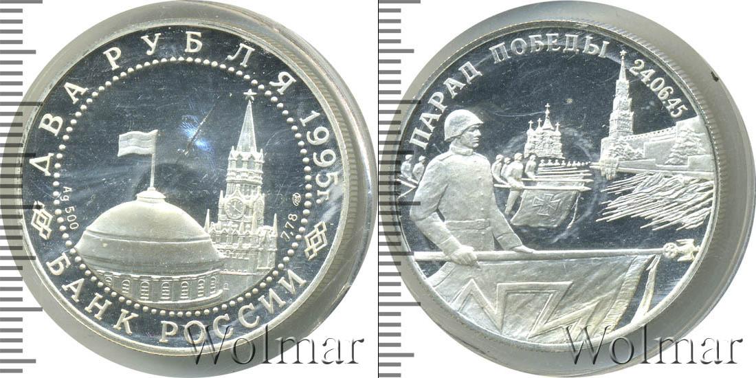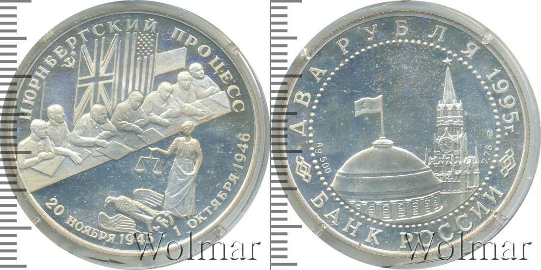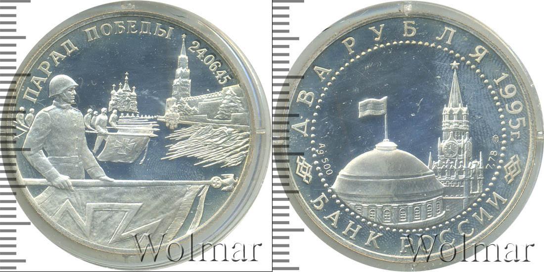 Изображение двуглавого орла, эмблемы ЦБРФ. Ниже расположена надпись: БАНК РОССИИ. Эмблему обрамляет узор из множества точек. Вверху указан номинал и дата выпуска монеты: ДВА РУБЛЯ 1995 г. По центру сделаны отметки – тип драгметалла и проба сплава, знак мо