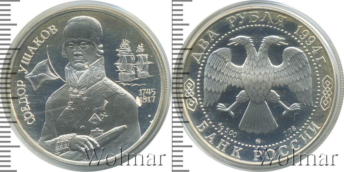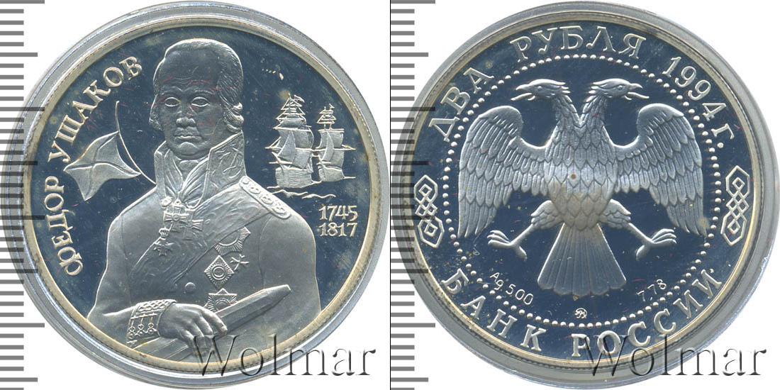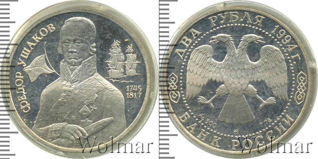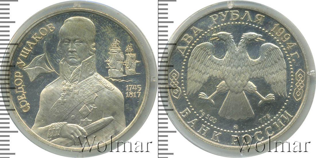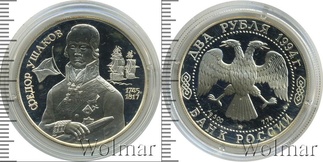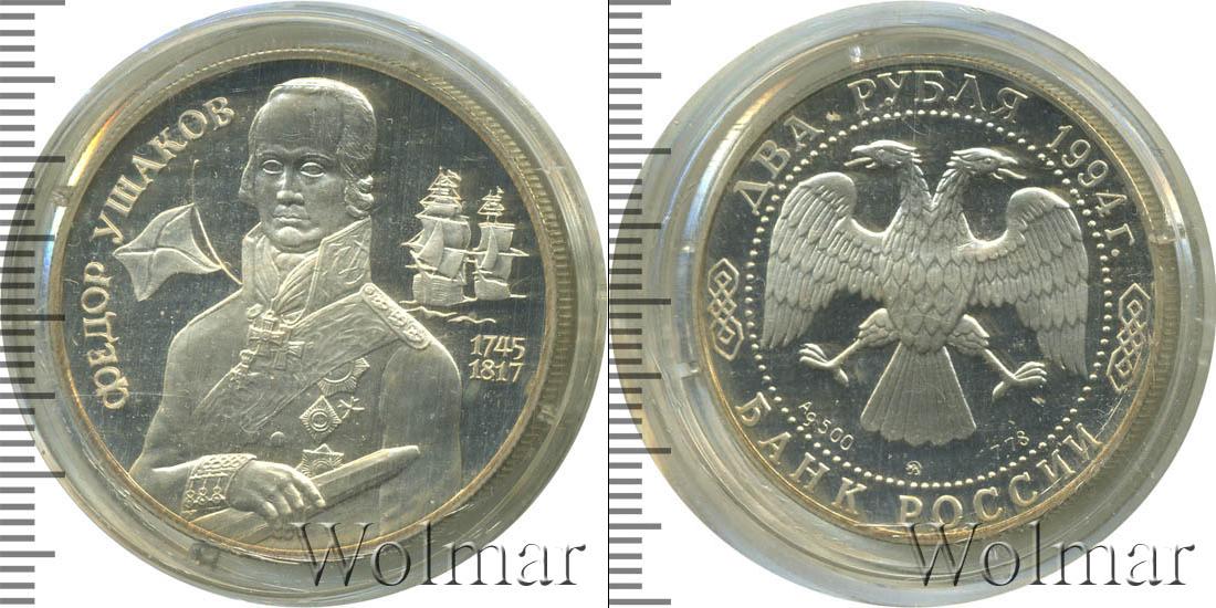 Изображение русского адмирала Ф.Ф. Ушакова в военном мундире с подзорной трубой в руке, слева - кормовой Андреевский флаг, справа - два парусных корабля. Фёдор Фёдорович Ушаков (1744 - 02/14.10.1817) - русский флотоводец, адмирал, один из создателей