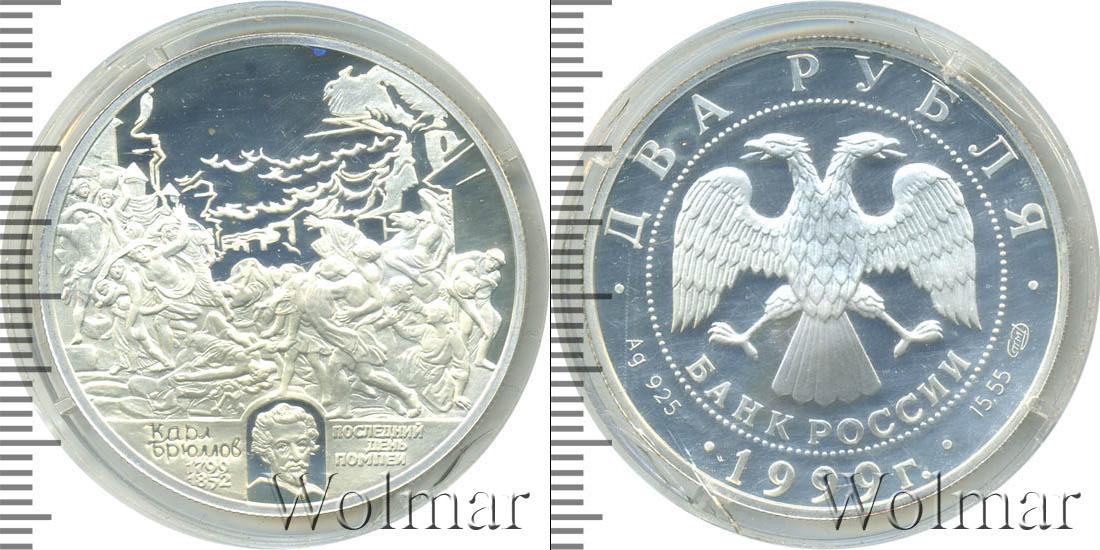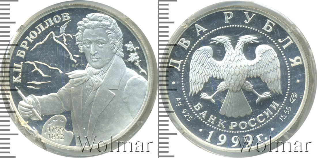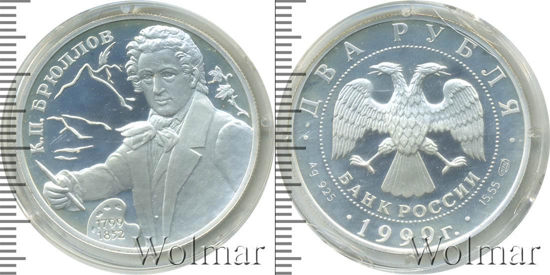 На капсуле скол. Портрет К.П.Брюллова кисти художника В.А.Тропинина на фоне очертаний гор, внизу — палитра. Карл Павлович Брюллов (12/23.12.1799 - 11/22.06.1852) — руccкий живописец и рисовальщик. Его творчество внесло в живопись русского классицизма