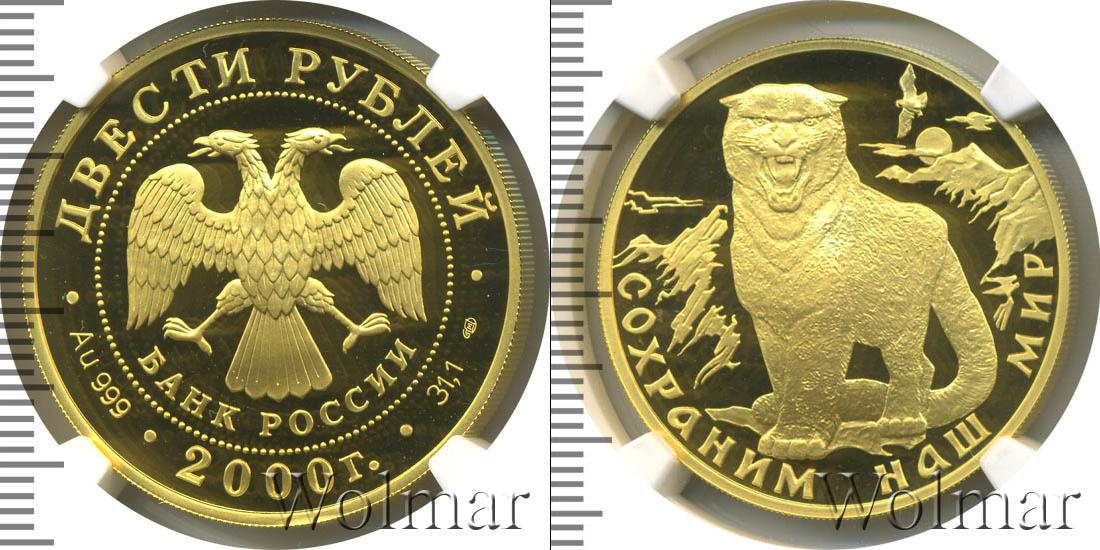 Цена монеты 200 рублей 2000 года Снежный барс в городе Москва на сегодня, 04 февраля 2026 года