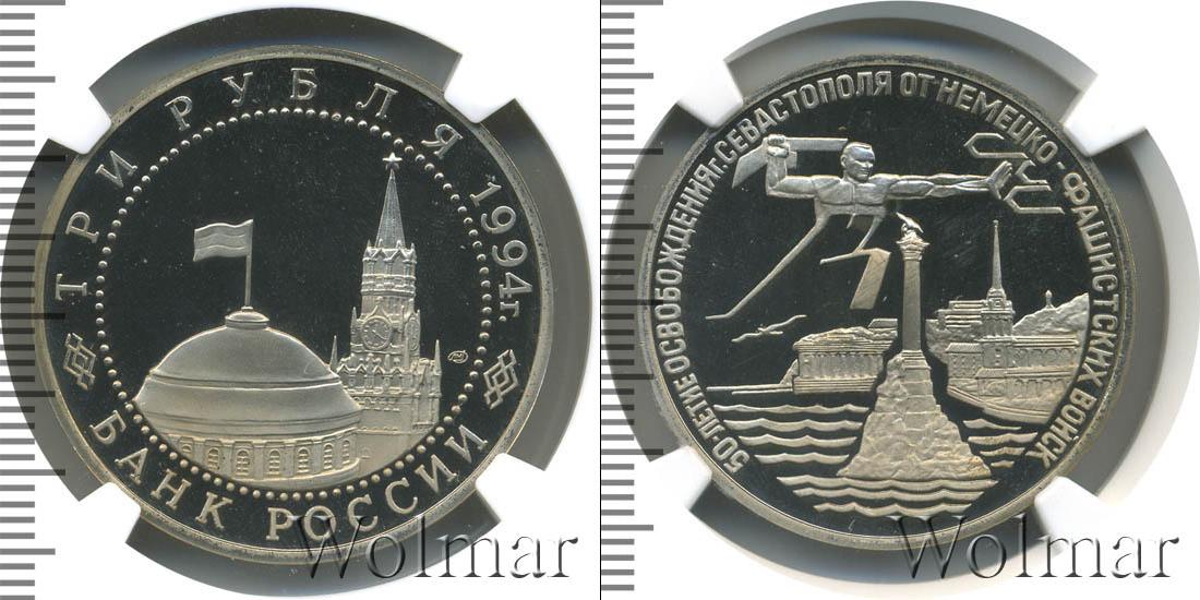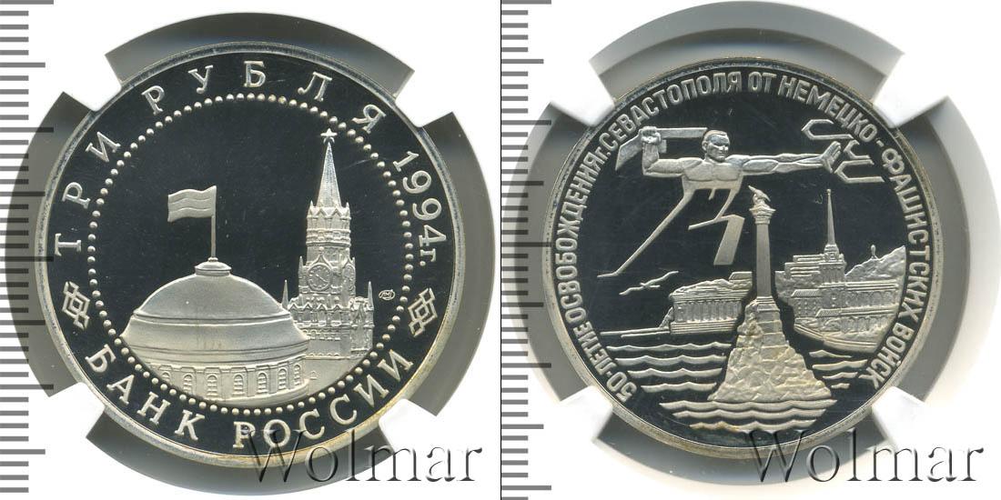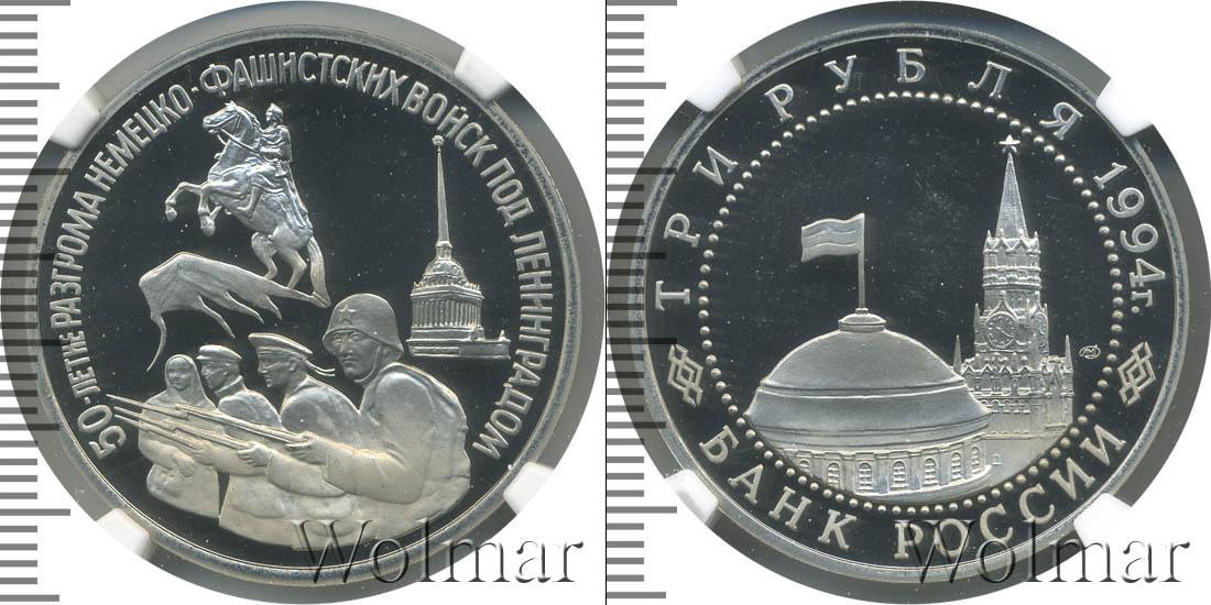 Цена монеты 3 рубля 1994 года 50-летие разгрома немецко-фашистских войск под Ленинградом в городе Москва на сегодня, 02 апреля 2026 года
