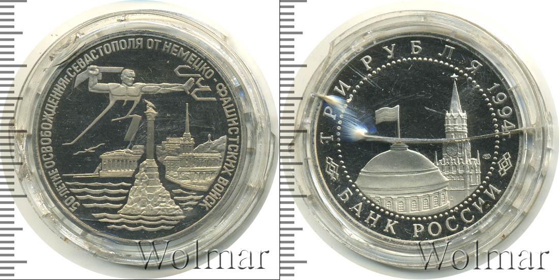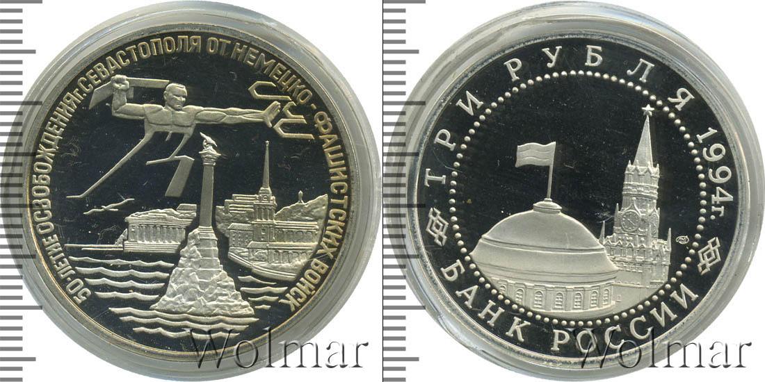 Цена монеты 3 рубля 1994 года 50-летие разгрома немецко-фашистских войск под Ленинградом в городе Москва на сегодня, 16 февраля 2026 года