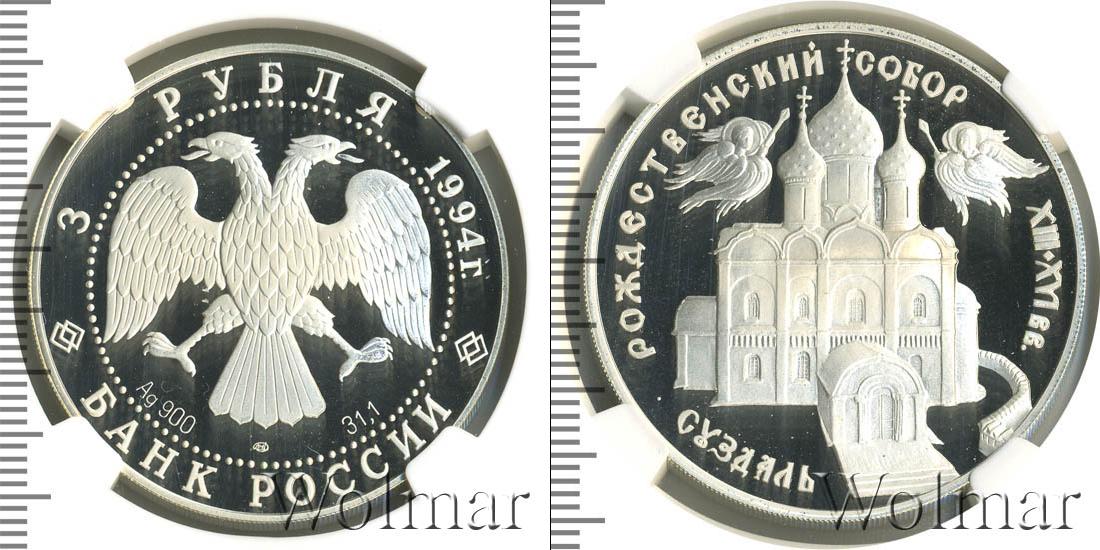 В слабе NGC. Изображение Богородице-Рождественского собора XIII-XVI вв. в Суздале, над ним слева и справа - два крылатых серафима. Богородице-Рождественский собор построен в 1222 - 1225 гг. в г. Суздале в честь Богоматери. Тираж: 30 000 3 рубля. Бого