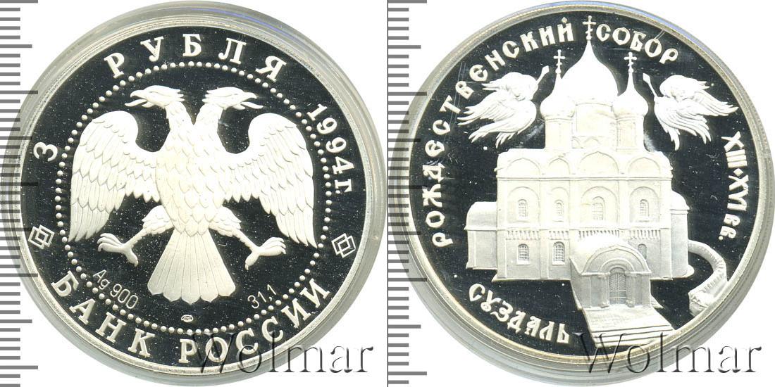 Изображение Богородице-Рождественского собора XIII-XVI вв. в Суздале, над ним слева и справа - два крылатых серафима. Богородице-Рождественский собор построен в 1222 - 1225 гг. в г. Суздале в честь Богоматери. Тираж: 30 000 3 рубля. Богородице-Рождес