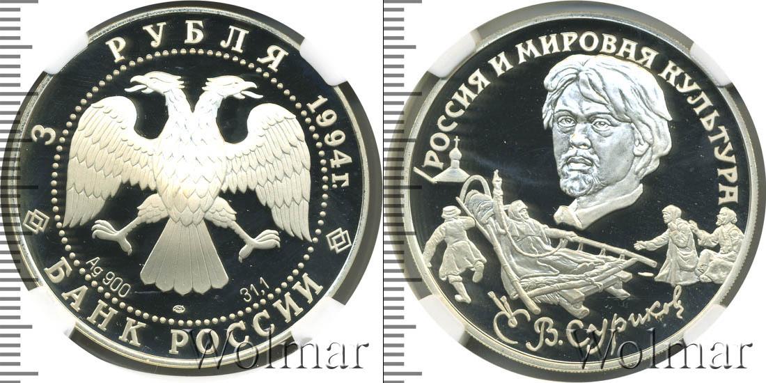 В слабе NGC. Автопортрет В.И. Сурикова, под ним - фрагменты его картины "Боярыня Морозова" (слева направо: купол церкви, бегущий мальчик, боярыня Морозова в санях, странница и юродивый), внизу - палитра с кистями и подпись-факсимиле художника. Васили