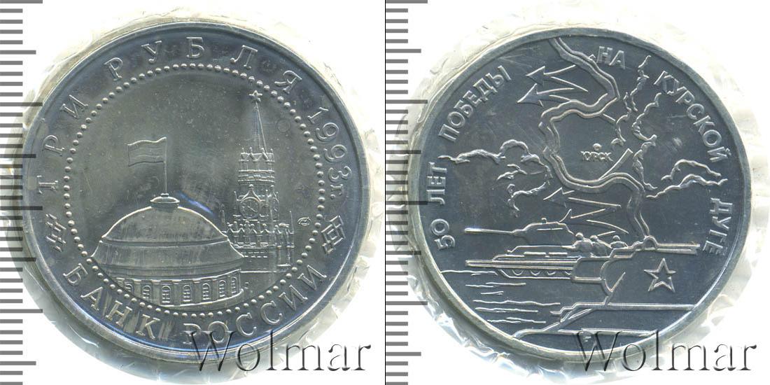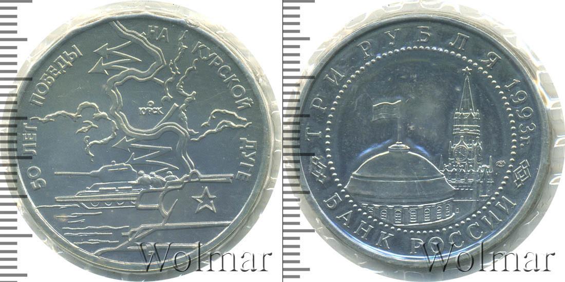Цена монеты 3 рубля 1993 года 50-летие Победы на Курской дуге в городе Москва на сегодня, 16 февраля 2026 года