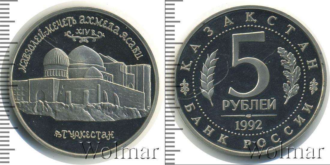 Цена монеты 5 рублей 1992 года Мавзолей-мечеть Ахмеда Ясави в г. Туркестане (Республика Казахстан) в городе Москва на сегодня, 14 октября 2025 года
