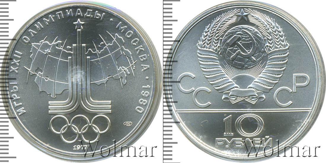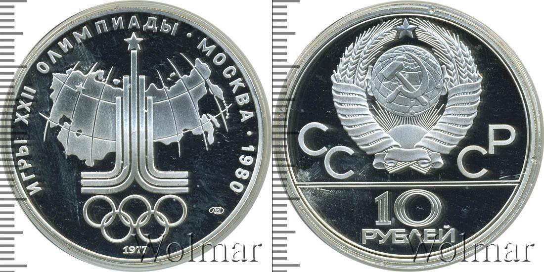 10 рублей. Карта СССР. Игры XXII Олимпиады ЛМД