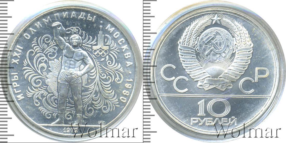 10 рублей. Поднятие гири. Игры XXII Олимпиады ЛМД