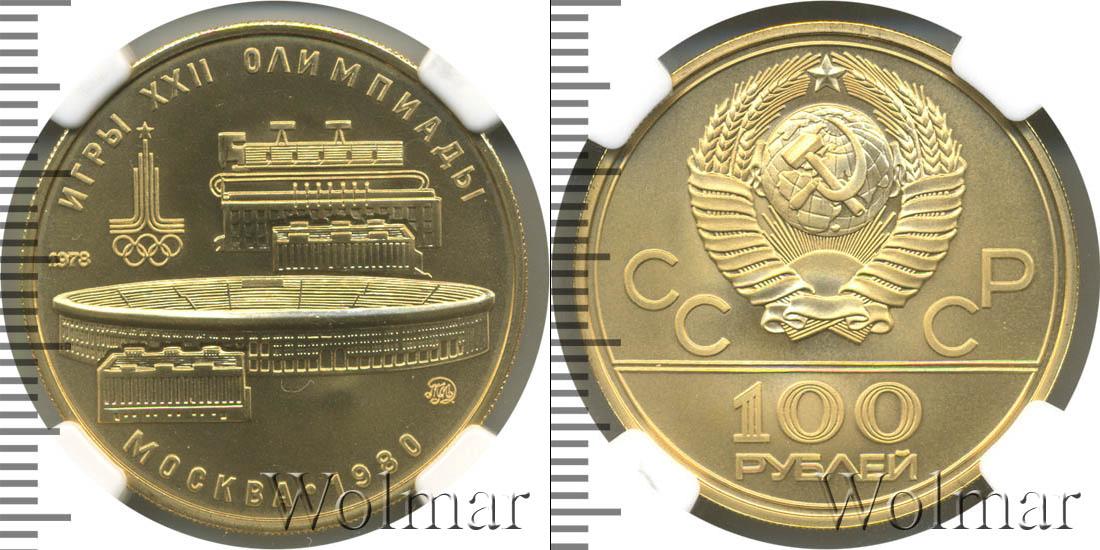 Цена монеты 100 рублей 1978 года Олимпиада-80, Лужники в городе Москва на сегодня, 09 февраля 2026 года