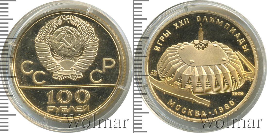 900 проба. Диаметр 30 мм 100 рублей. Универсальный спортивный зал Дружба. Игры XXII Олимпиады ММД