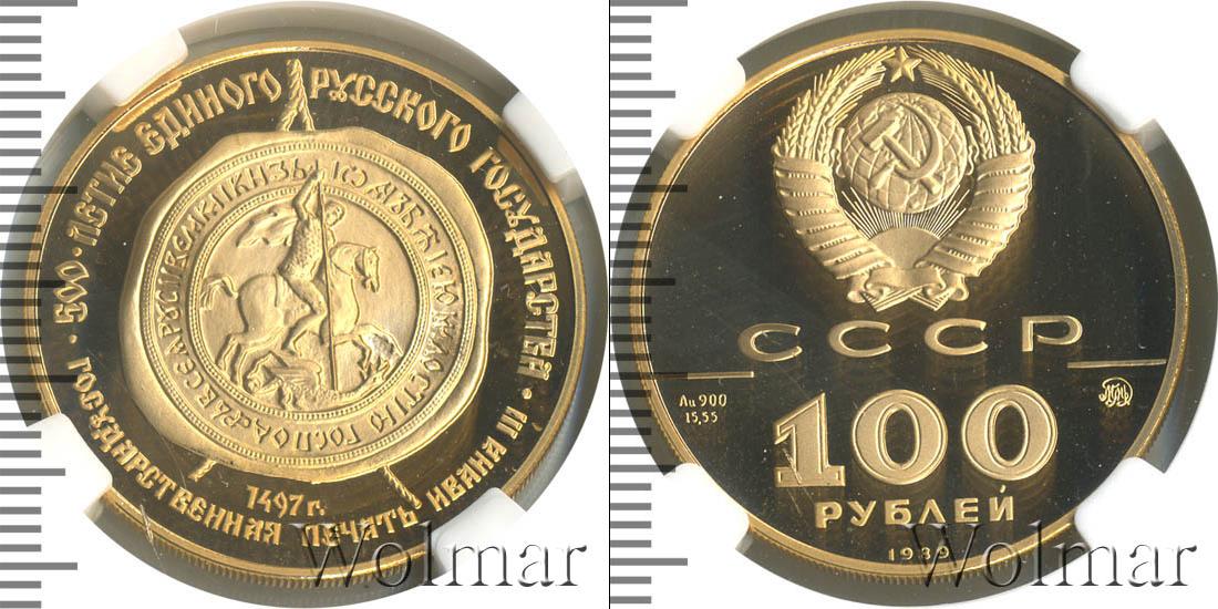 Микроцарапинки, патина 100 рублей ММД 500-лет.Русского един.гос. Государственная печать Ивана III