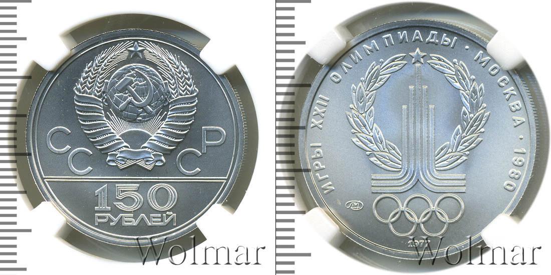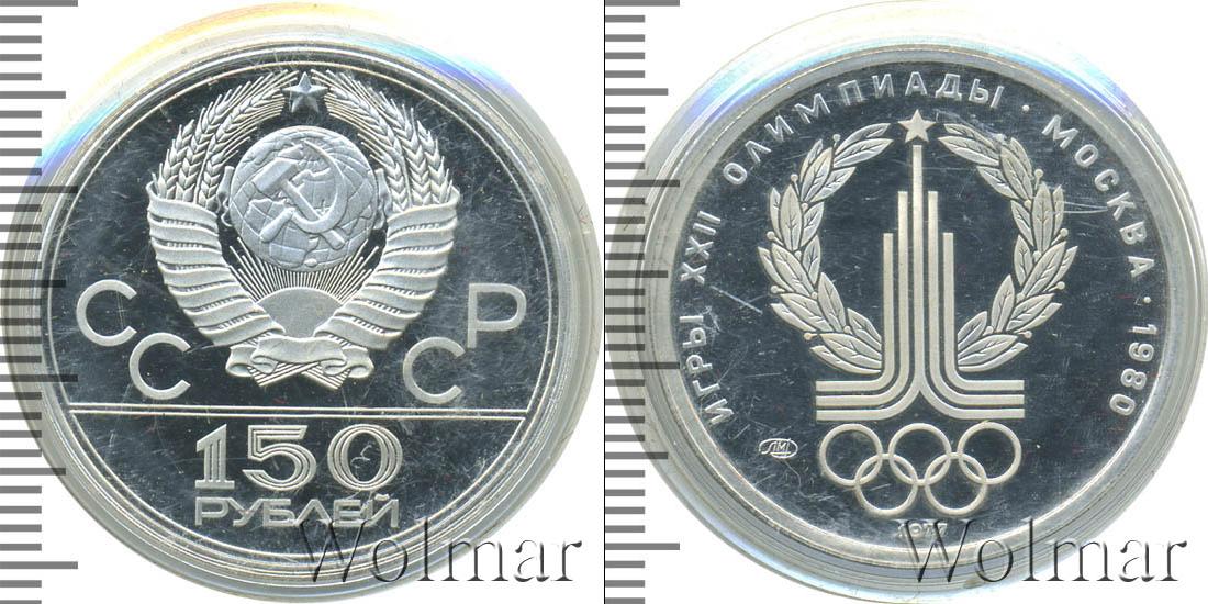 999 проба. Диаметр 28,6 мм. 150 рублей. Эмблема Олимпиады в лавровом венке ЛМД