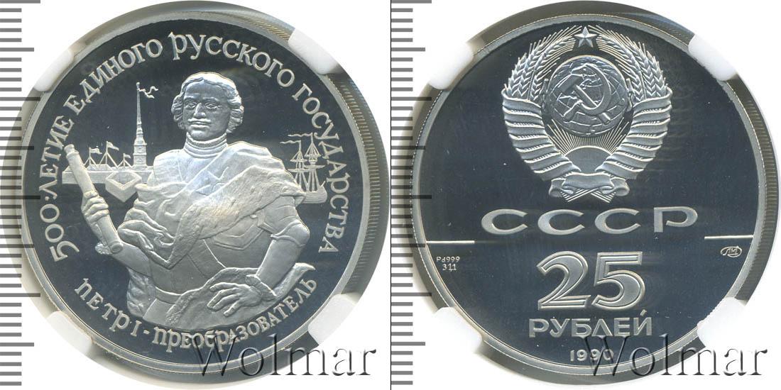 Цена монеты 25 рублей 1990 года Петр I в городе Москва на сегодня, 31 января 2026 года