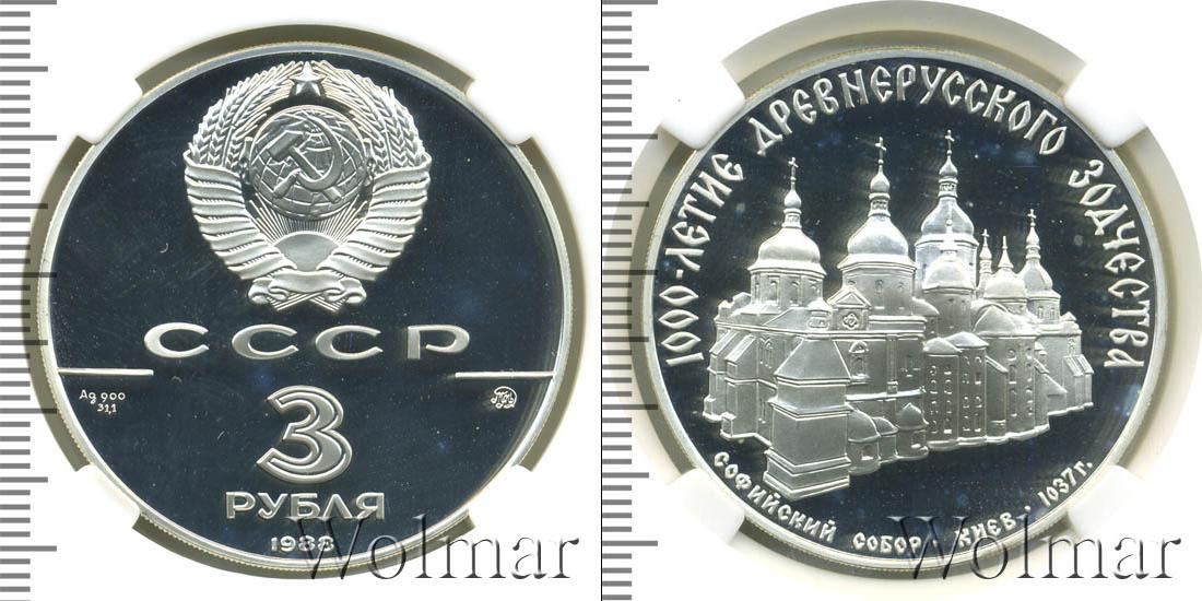 Патина, пятна, царапинки 3 рубля ММД Софийский собор в Киеве