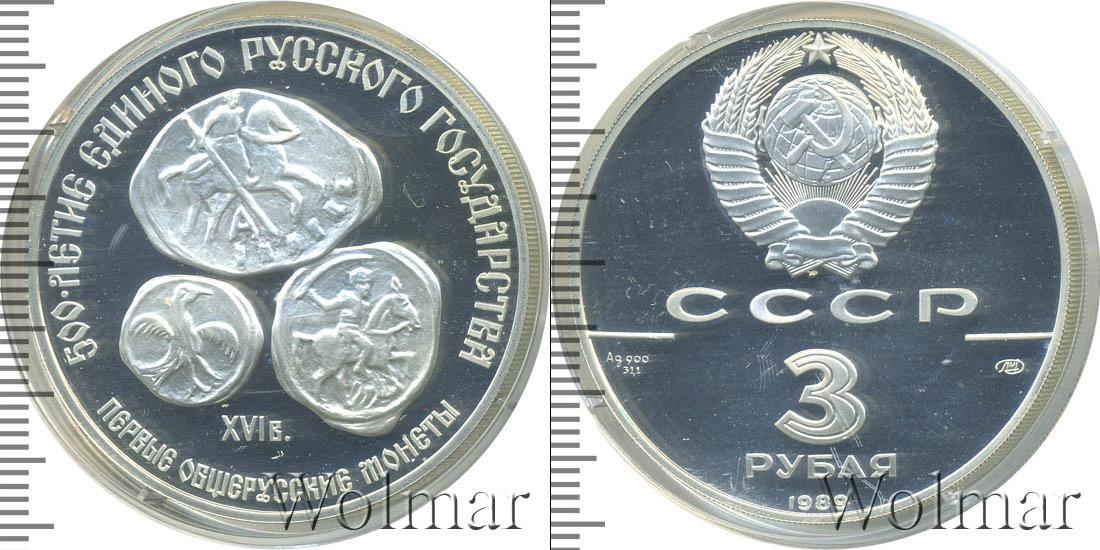 пятна 3 рубля ЛМД Первые общерусские монеты