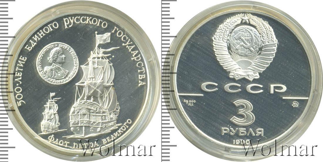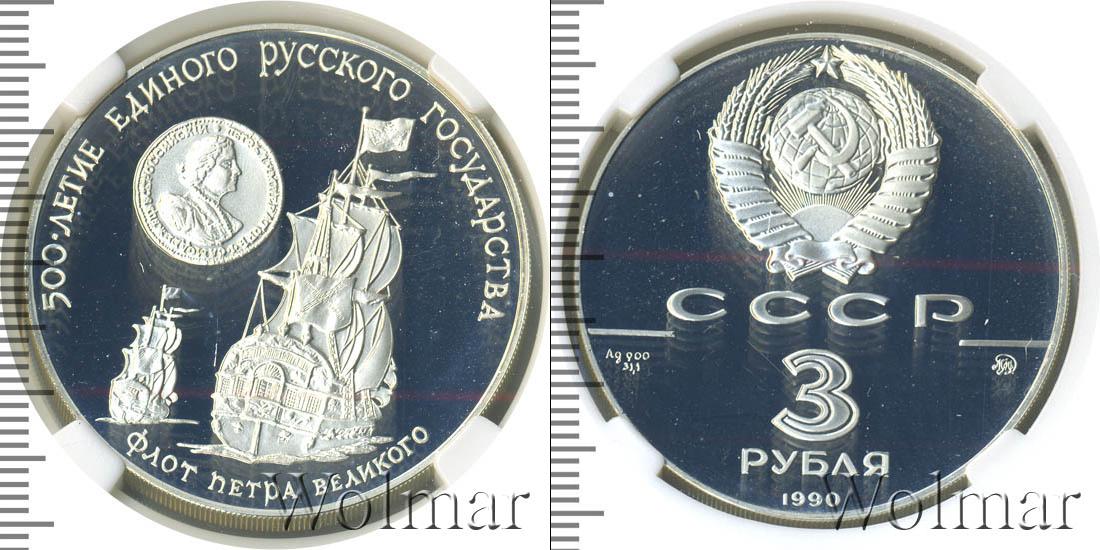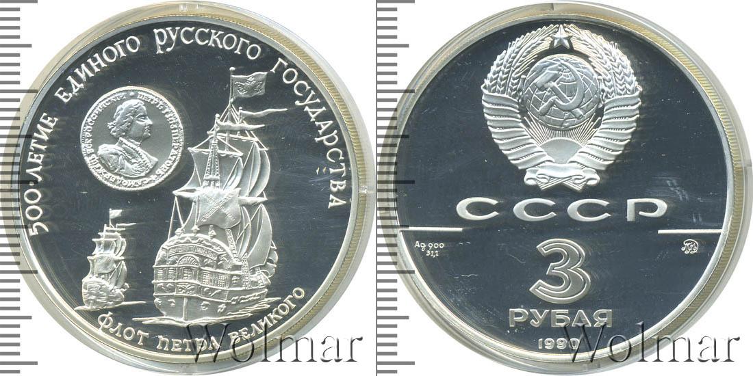 Царапинки, патина, пятна 3 рубля ММД Флот Петра Великого