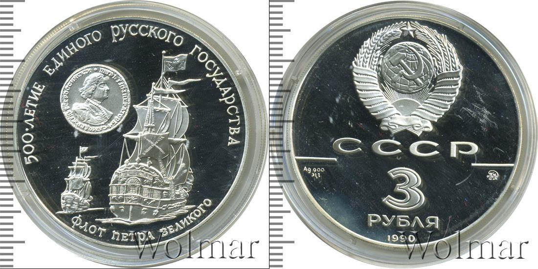 Цена монеты 3 рубля 1990 года Флот Петра в городе Москва на сегодня, 23 февраля 2026 года