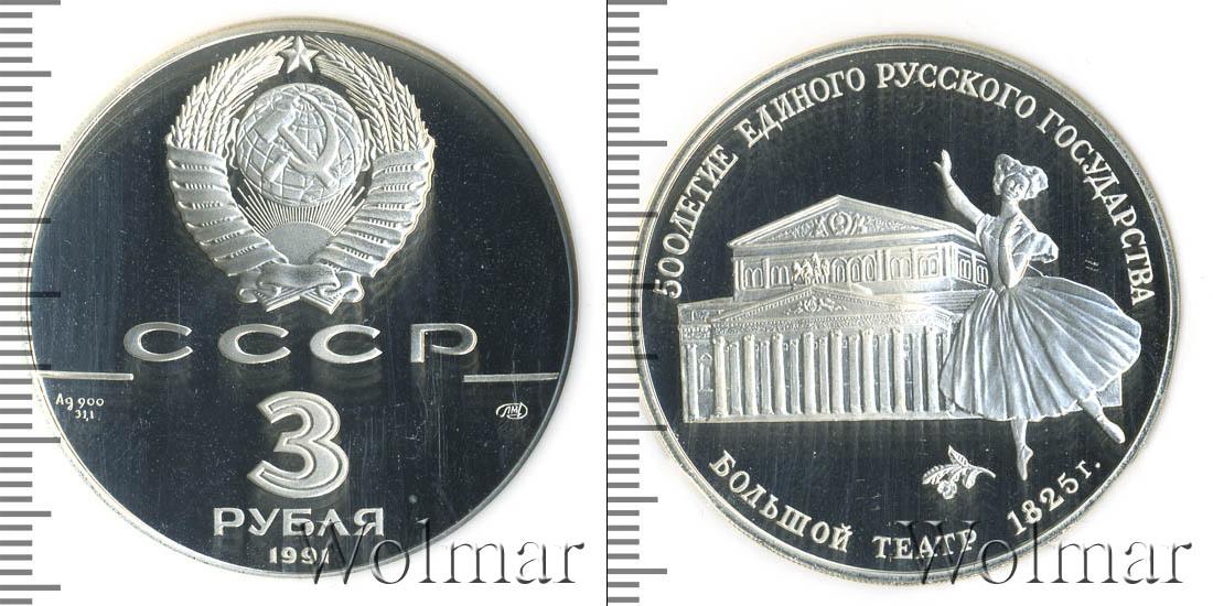 Цена монеты 3 рубля 1991 года Большой театр в городе Москва на сегодня, 23 февраля 2026 года