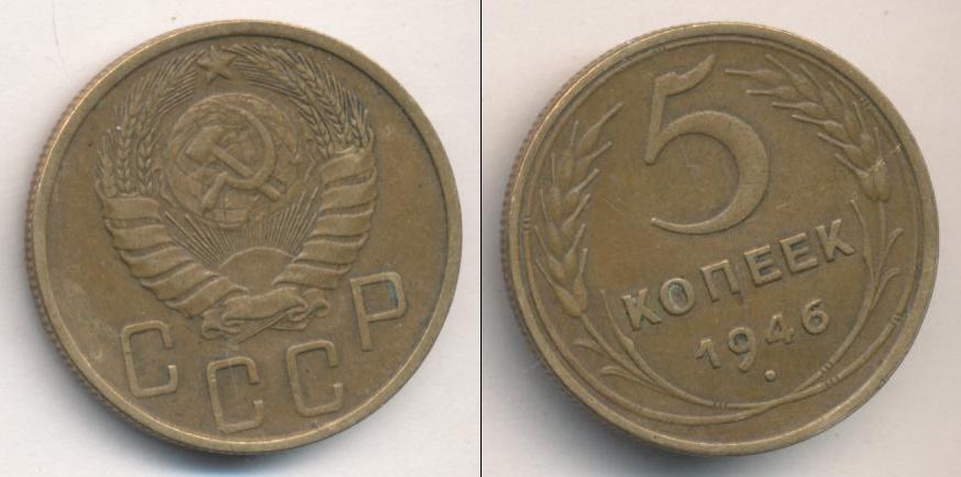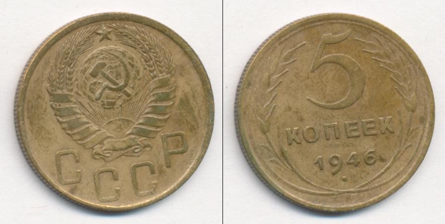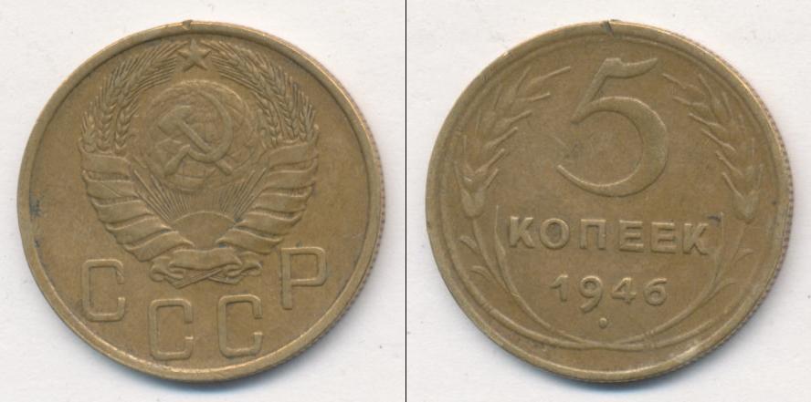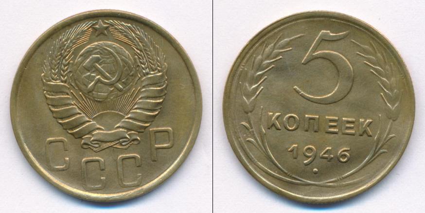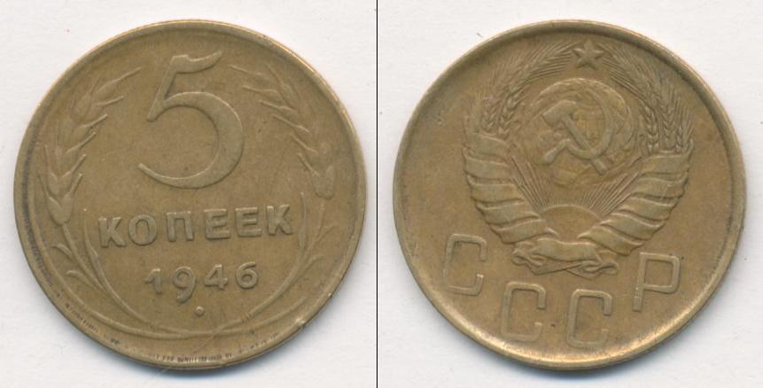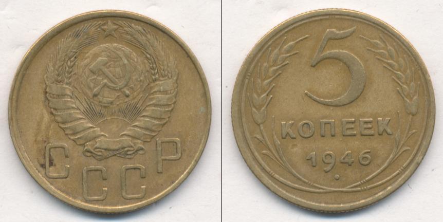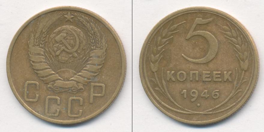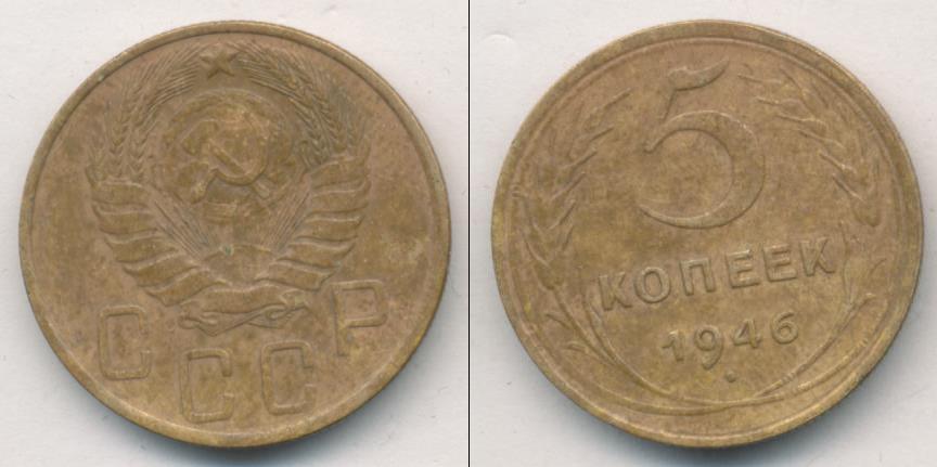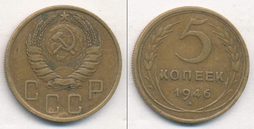 Цена монеты 5 копеек 1946 года в городе Москва на сегодня, 05 апреля 2026 года