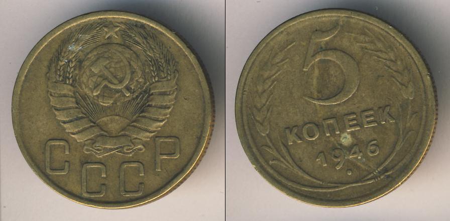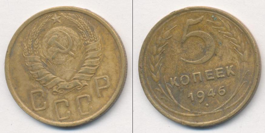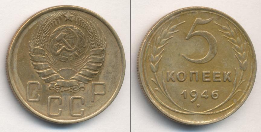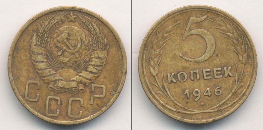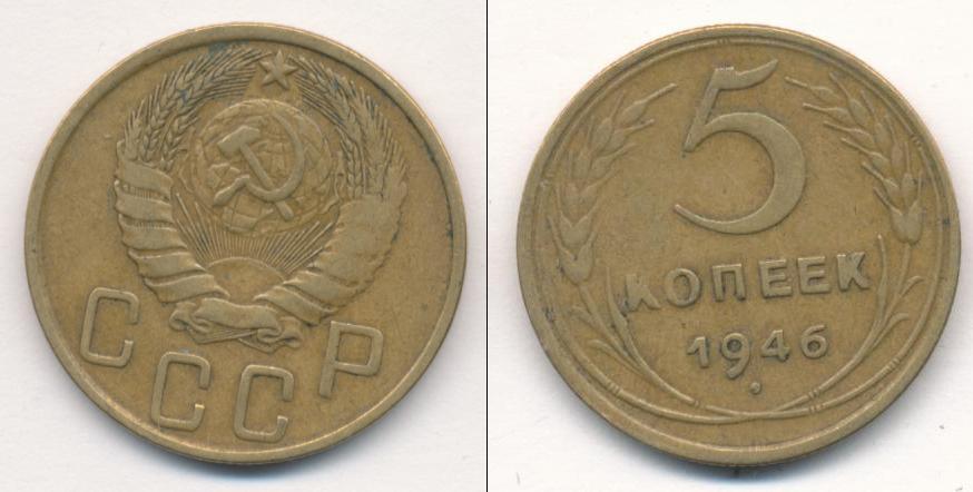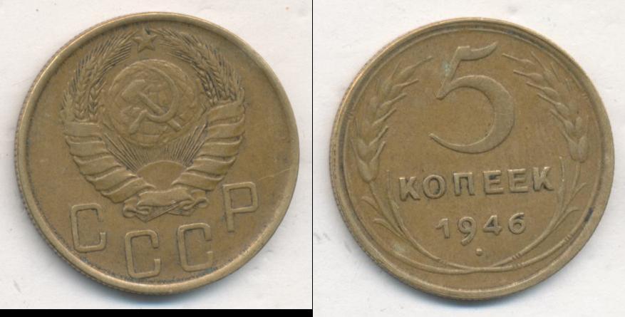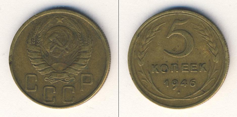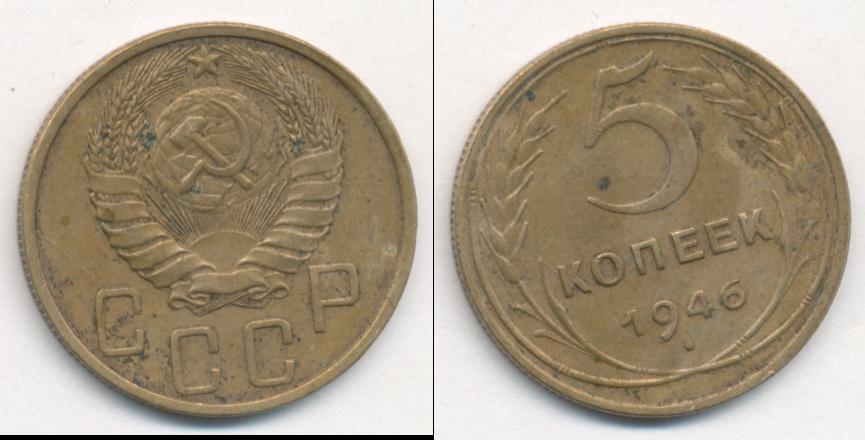 Цена монеты 5 копеек 1946 года в городе Москва на сегодня, 05 апреля 2026 года