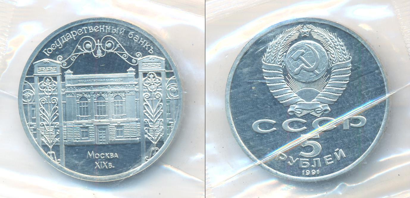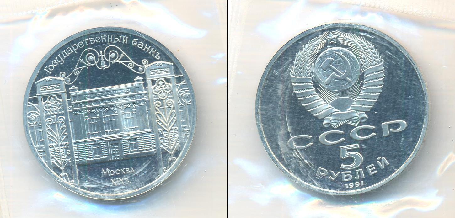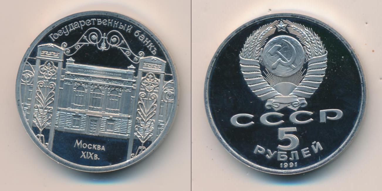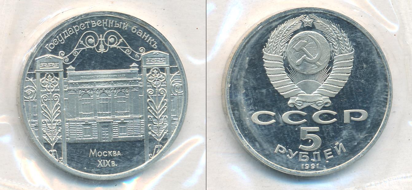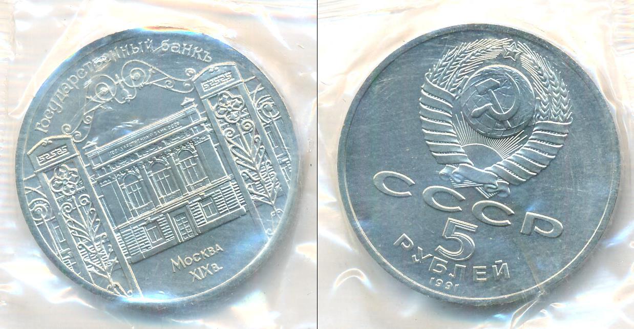 Микроцарапинки, патина 5 рублей Здание Госбанка СССР в Москве