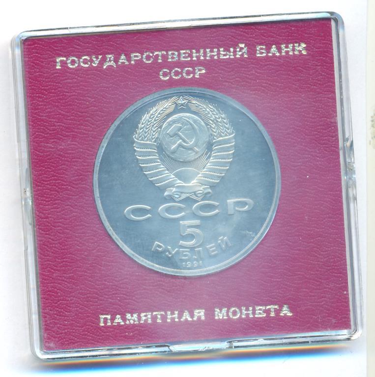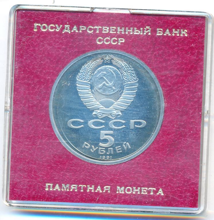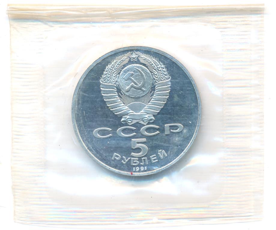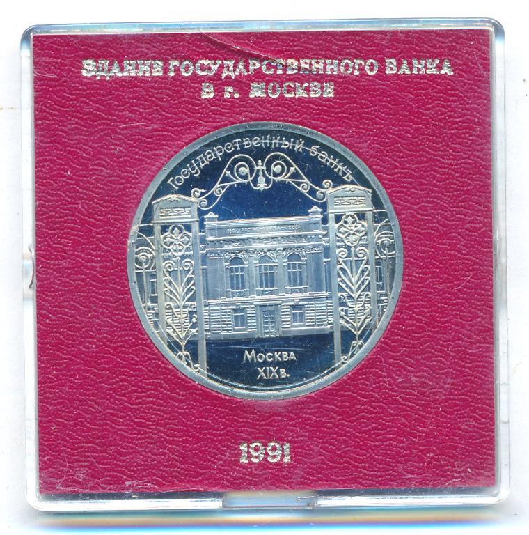 Царапинки, патина, пятна 5 рублей. Пластиковая упаковка Здание Госбанка СССР в Москве