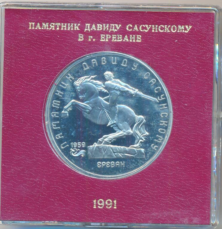 Патина 5 рублей. Упаковка Памятник Давиду Сасунскому в Ереване