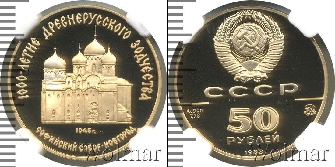 Монета абсолютно без дефектов. Тираж: 25 000. 900 проба. Диаметр 22,6 мм. 50 рублей. Софийский собор в Новгороде ММД