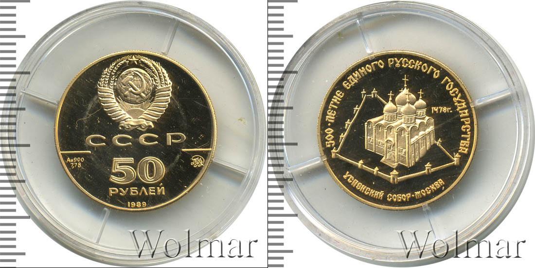 Монета абсолютно без дефектов. Тираж: 25 000. 900 проба. Диаметр 22,6 мм. 50 рублей. Успенский собор в Москве ММД