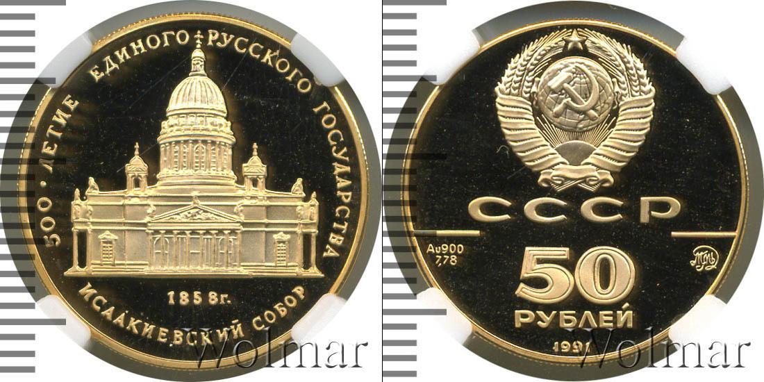 Цена монеты 50 рублей 1991 года Исаакиевский собор в городе Москва на сегодня, 23 октября 2025 года